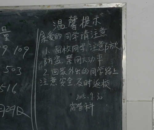杨主任一行重点察看了学生宿舍、食堂、电房等场所,要求相关科室负责人对学生宿舍安全、校区消防安全、水电供应等工作要高度重视,要一如既往的做好国庆期间的各项工作,确保校区国庆期间的平安、稳定。