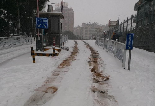 为了做好此次雨雪低温天气应对防范,浔东管理办早在29日就召开了全体教职工大会,传达学校党委宣传部安全管理的通知精神,并部署了低温冰冻天气应对措施,化雪盐、防滑草垫一应俱全。